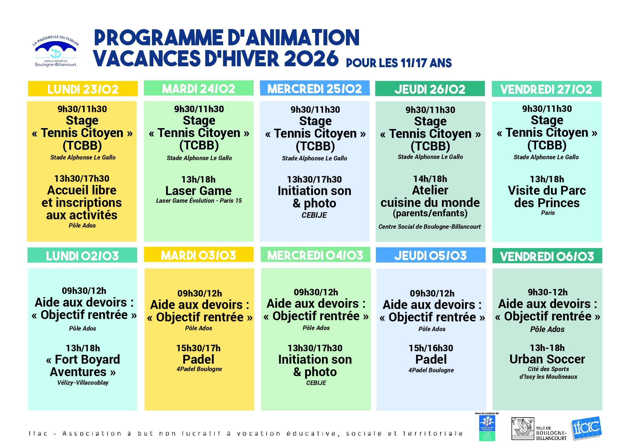 Programmation vacances d’hiver 2026 pour les 11-17 ans